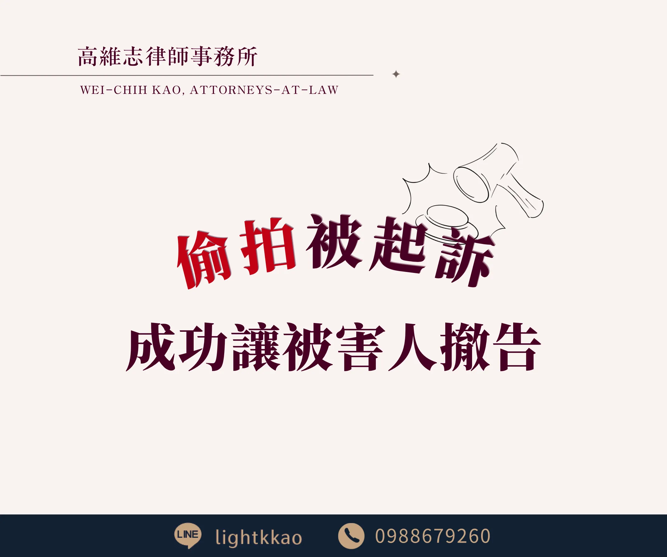 如果您正因偷拍遭到偵辦,可立即打電話給高律師0988679260、或者加LINE ID:lightkkao與高律師聯絡,就可以在最短時間跟被害人和解。